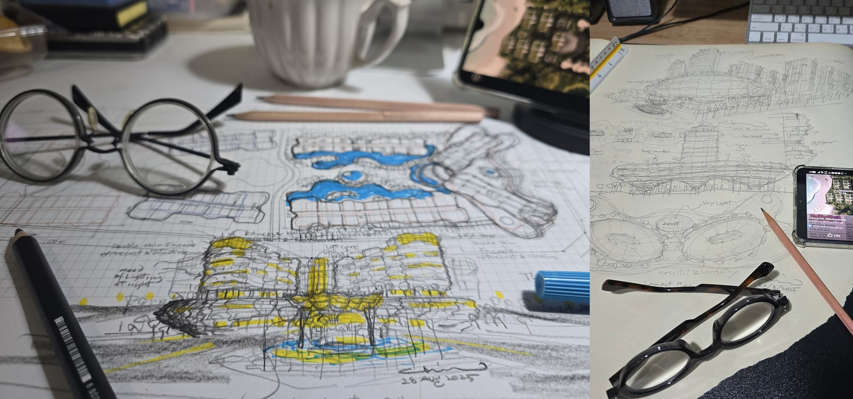 VEDA Longevity Center was internally known as “The Oyster Space” in our design team. This is because the conceptual architecture and environmental design of the project emerges from a philosophical inquiry into the ontology of form, surface, and the interplay between natural and constructed environments. Inspired by the morphology of seashells shaped through time, erosion, and tidal rhythms, the design seeks to embody both tectonic necessity and aesthetic fluidity. The project is located on Bang Saray beachfront, a secluded site positioned in contrast to the restless tourism of Pattaya. It is envisioned as a sanctuary of hospitality, wellbeing, and ecological humanism, designed under the evaluative frameworks of WELL and LEED. Key sustainable strategies include porous facades for natural ventilation, water recycling, green terraces, and Al-driven energy systems, transforming the structure into a living ecological organism rather than inert concrete mass. By translating coastal phenomenology into built form, The Oyster Space represents more than habitation. It is a metaphysical dialogue with nature, crystallizing identity (eidos) through the metaphysics of shell, stone, and sea. Ultimately, the project becomes a poetic locus of hospitality that integrates technology, art, and environmental stewardship into a universal architecture of comfort and sustainability.